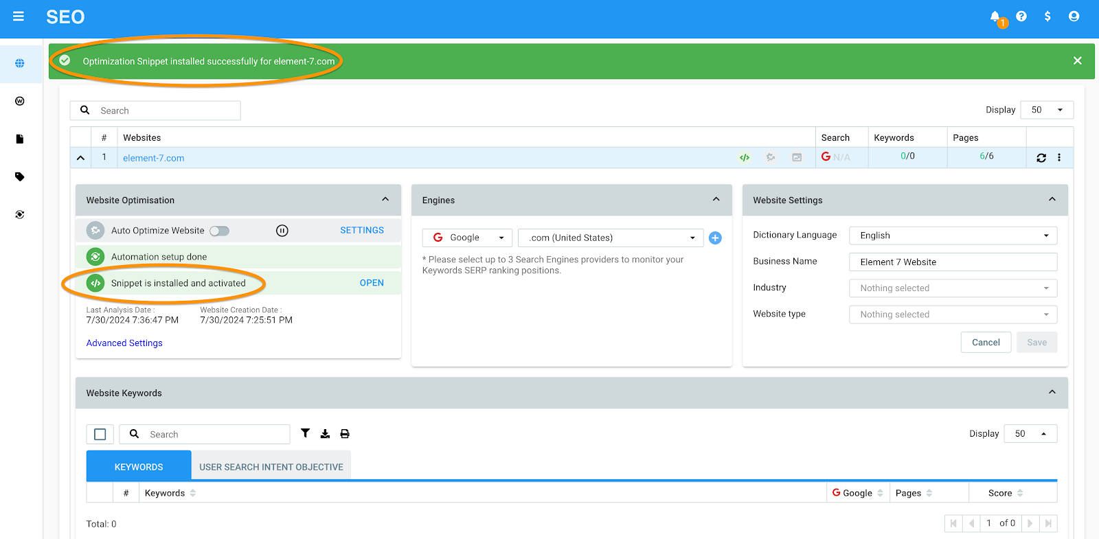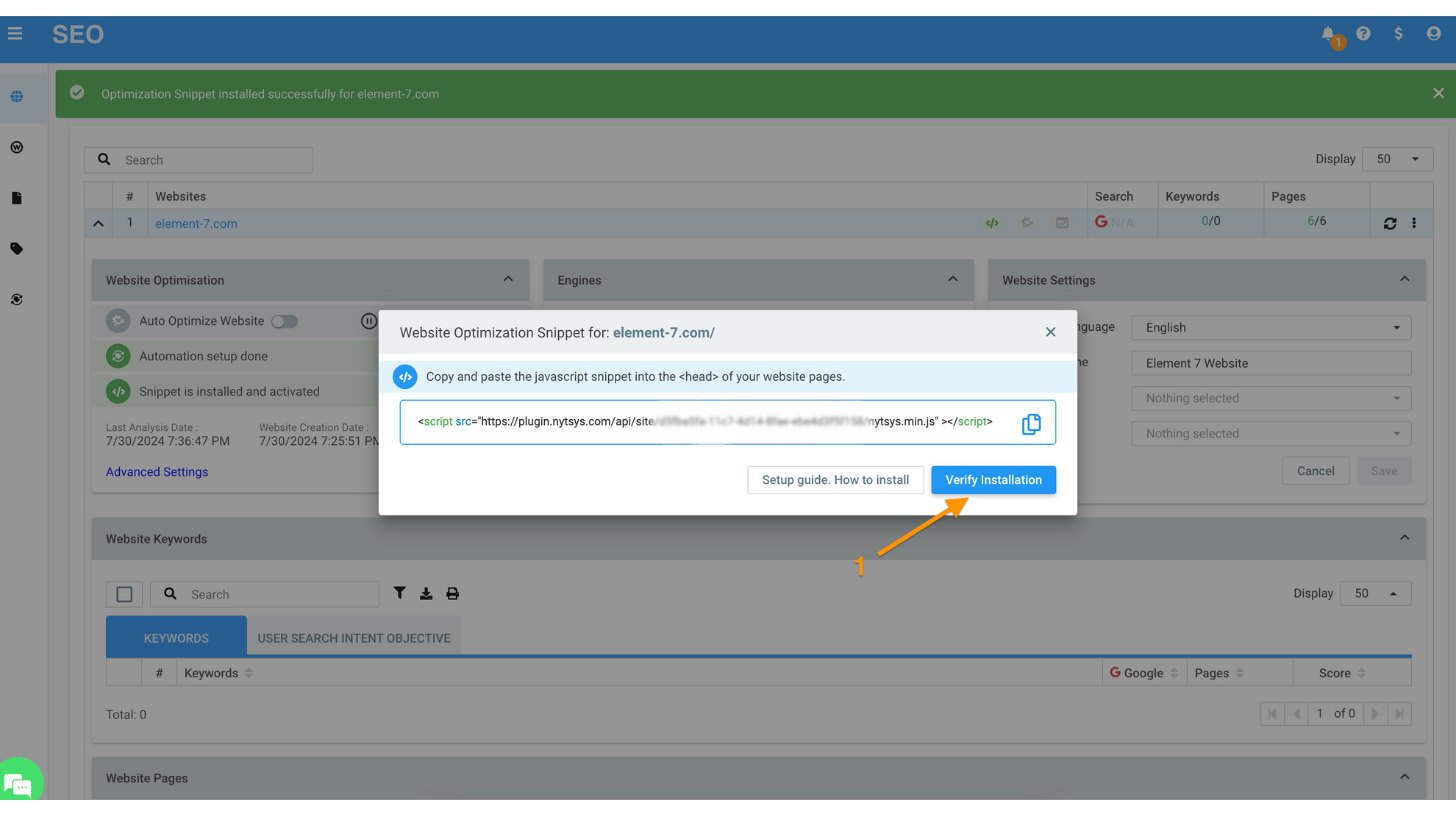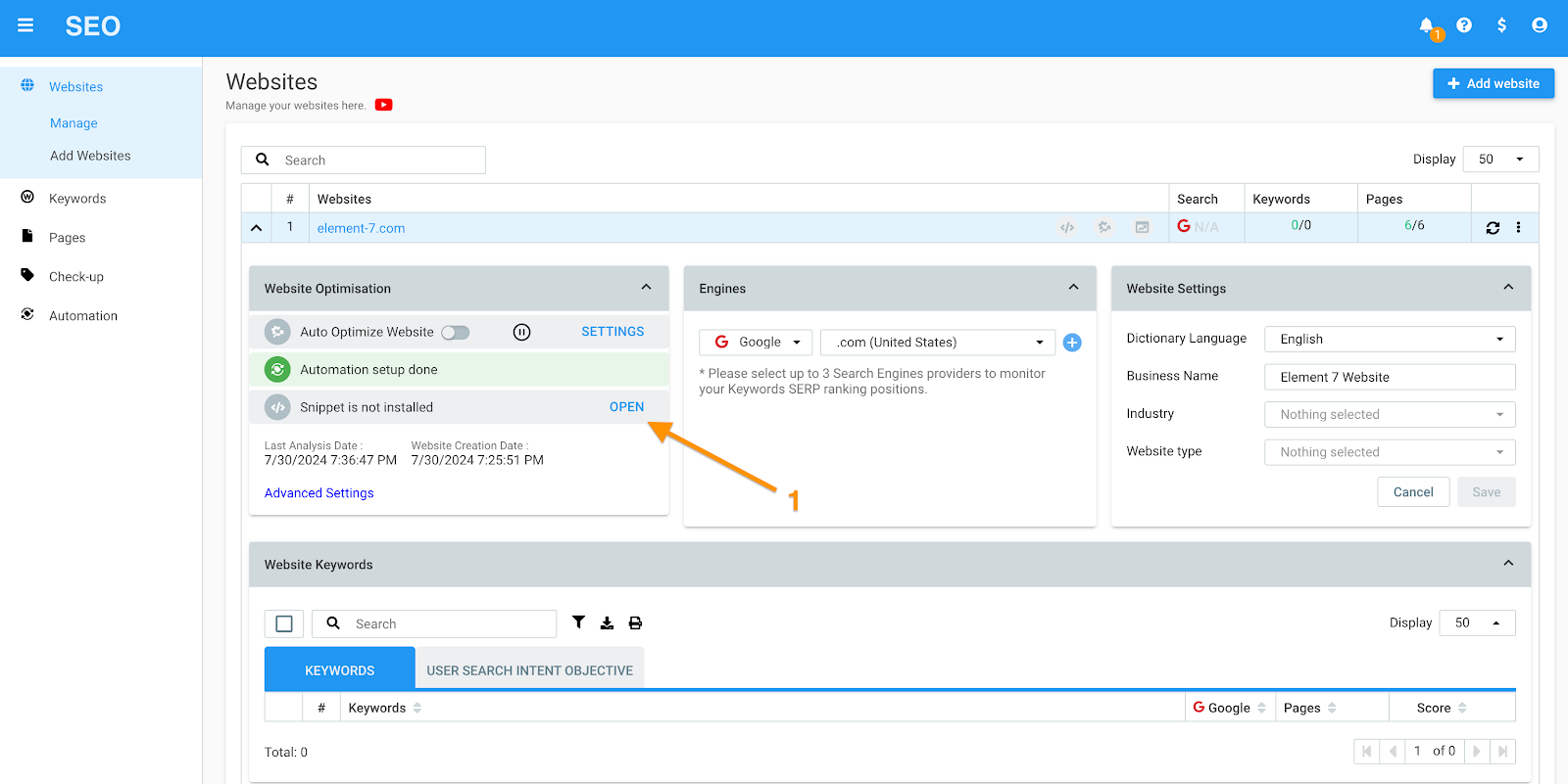 4. Under Website Optimisation, click the “OPEN” button next to “Snippet is not installed.”