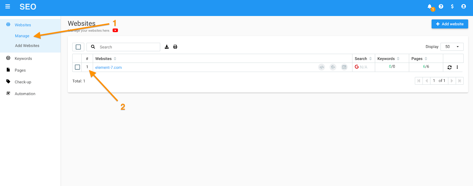 2. From the left sidebar, select “Websites” ➡️ “Manage.”